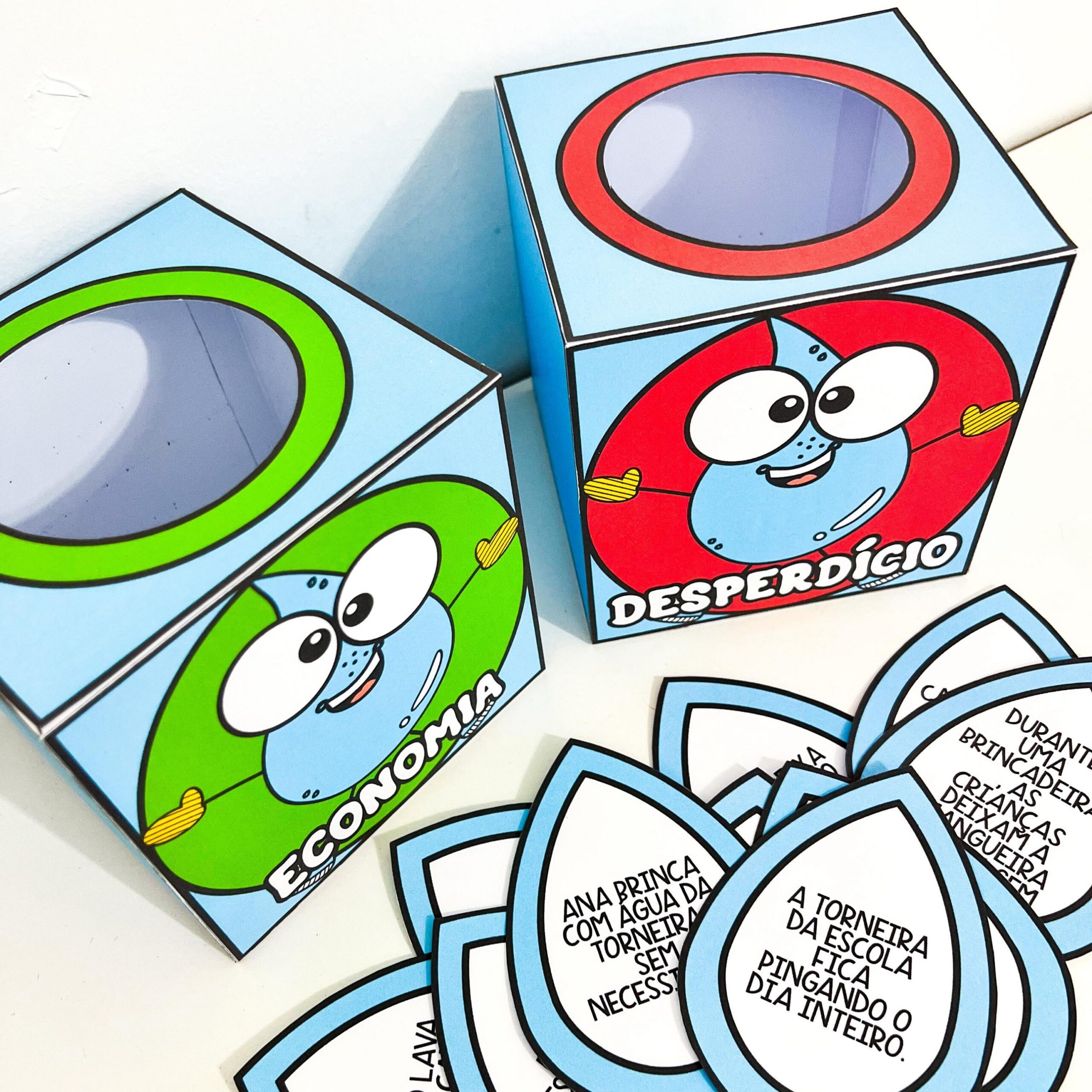 Recurso pedagógico ideal para trabalhar o Dia da Água de forma interativa e reflexiva com as crianças. A proposta é identificar atitudes de economia e desperdício de água, incentivando o uso consciente desse recurso essencial.
