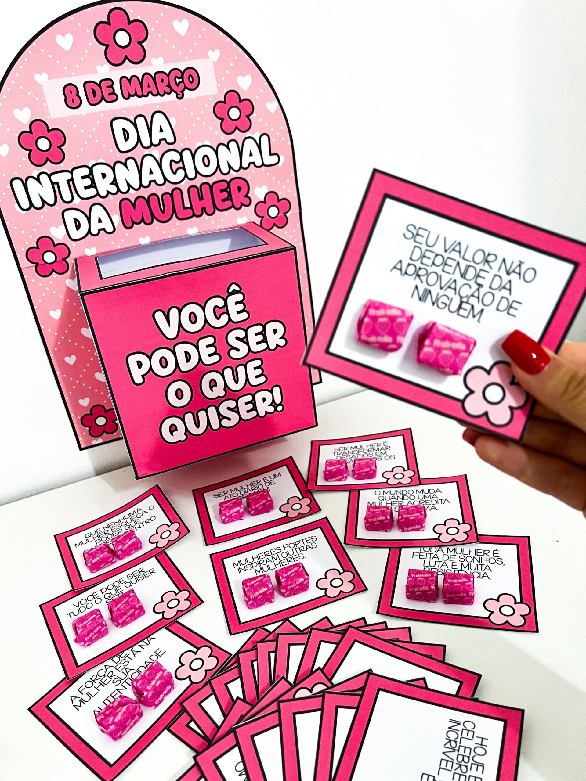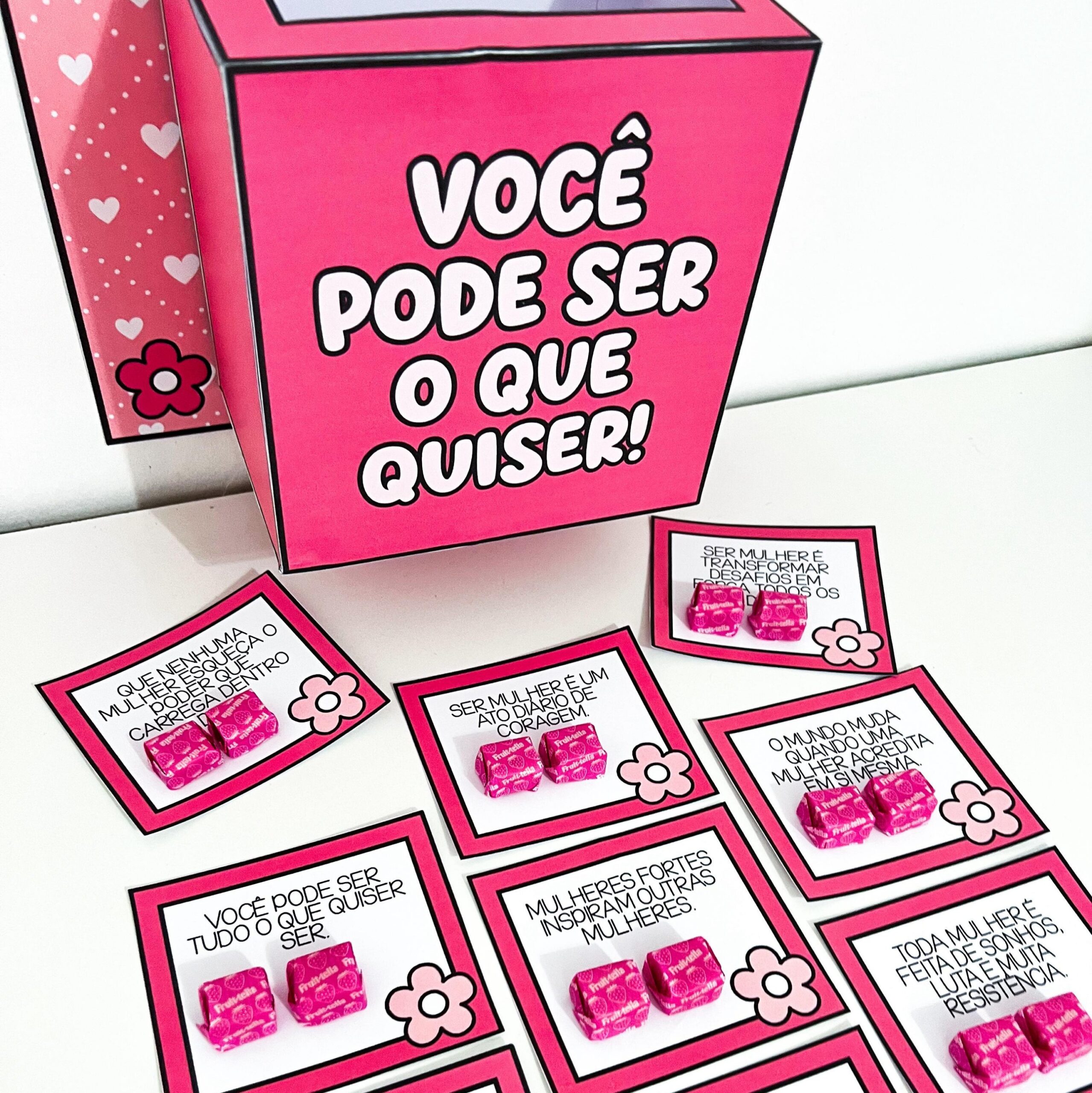 A Caixa Motivacional Dia da Mulher é perfeita para homenagear, valorizar e fortalecer a autoestima de cada mulher de forma simples e encantadora.