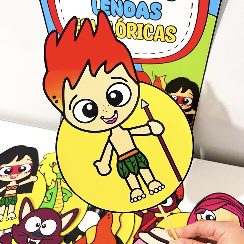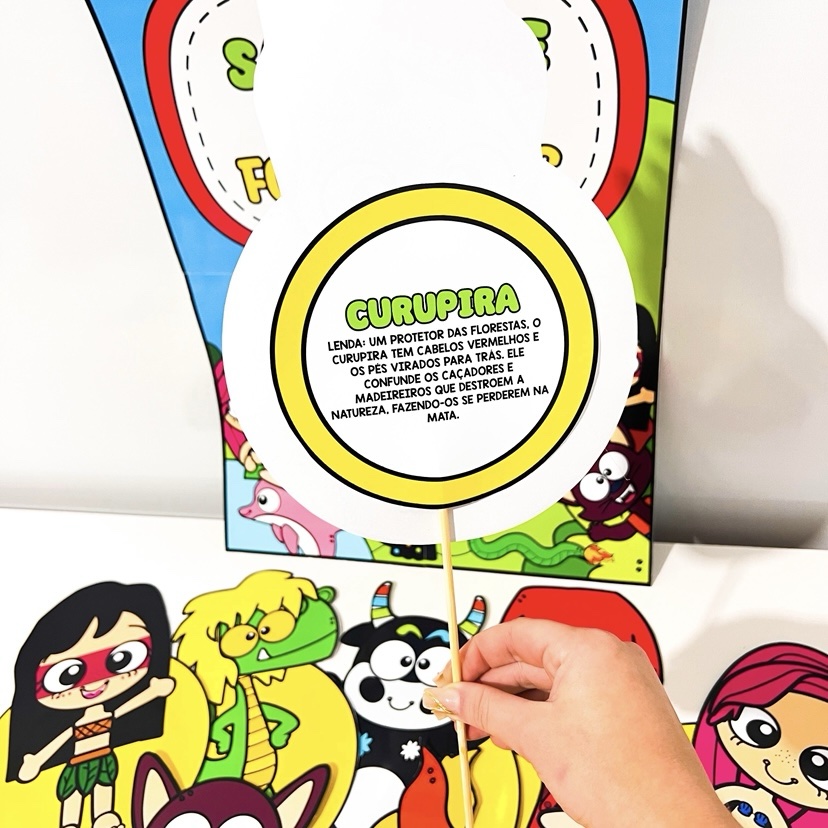 ✅ 10 personagens folclóricos em formato de palitoches (Saci, Iara, Boto, Cuca, Curupira, entre outros);