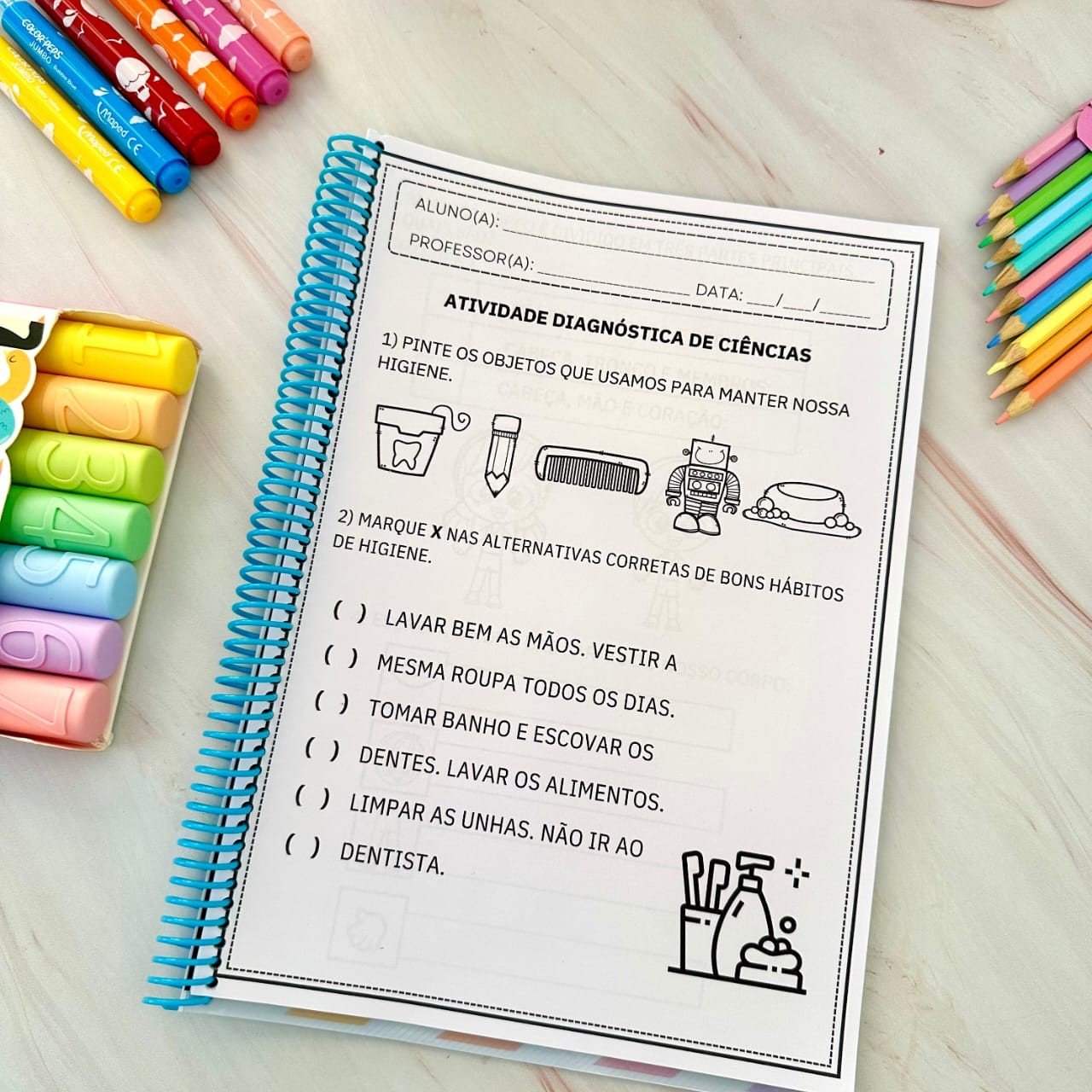 Arquivo em PDF pronto para impressão, com 12 páginas de atividades que avaliam habilidades nas áreas de: